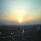名古屋JRビル15階の喫茶店から撮った写真。夕陽と飛行機雲が綺麗だった。