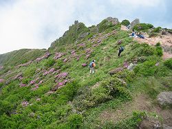 八合目から山頂にかけて「ミヤマキリシマ」が満開。昨年より
