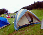 今年は天候に恵まれ、楽しく過ごせました。これから撤収します。テントはかなり斜めです。